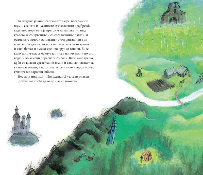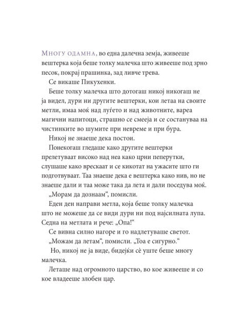 Многу одамна, во една далечна земја, живееше вештерка по име Пикухенки, која беше толку малечка што живееше под зрно песок, покрај прашинка, зад ливче трева.