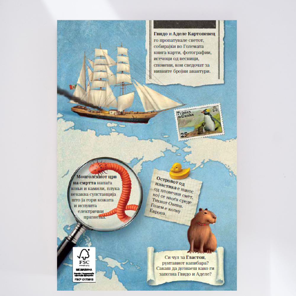 Гвидо и за Аделе Картопевец, главните протагонисти во оваа збирка раскази, се необичен пар што сака да патува по светот. Но, внимавајте, тие не се туристи – тие се патници. И имаат голема книга во која ги чуваат сите спомени од своите патувањата, кои се на граница помеѓу фантастичното и историски вистинитото. Токму оттука се раѓа раскажувачкиот универзум кој нè води низ петнаесет убави приказни и исто толку места – повторно, некои реални, некои не. Секоја од овие приказни, е приказна за отпорот, за утопијата, за субверзијата, за можноста за нов свет.
