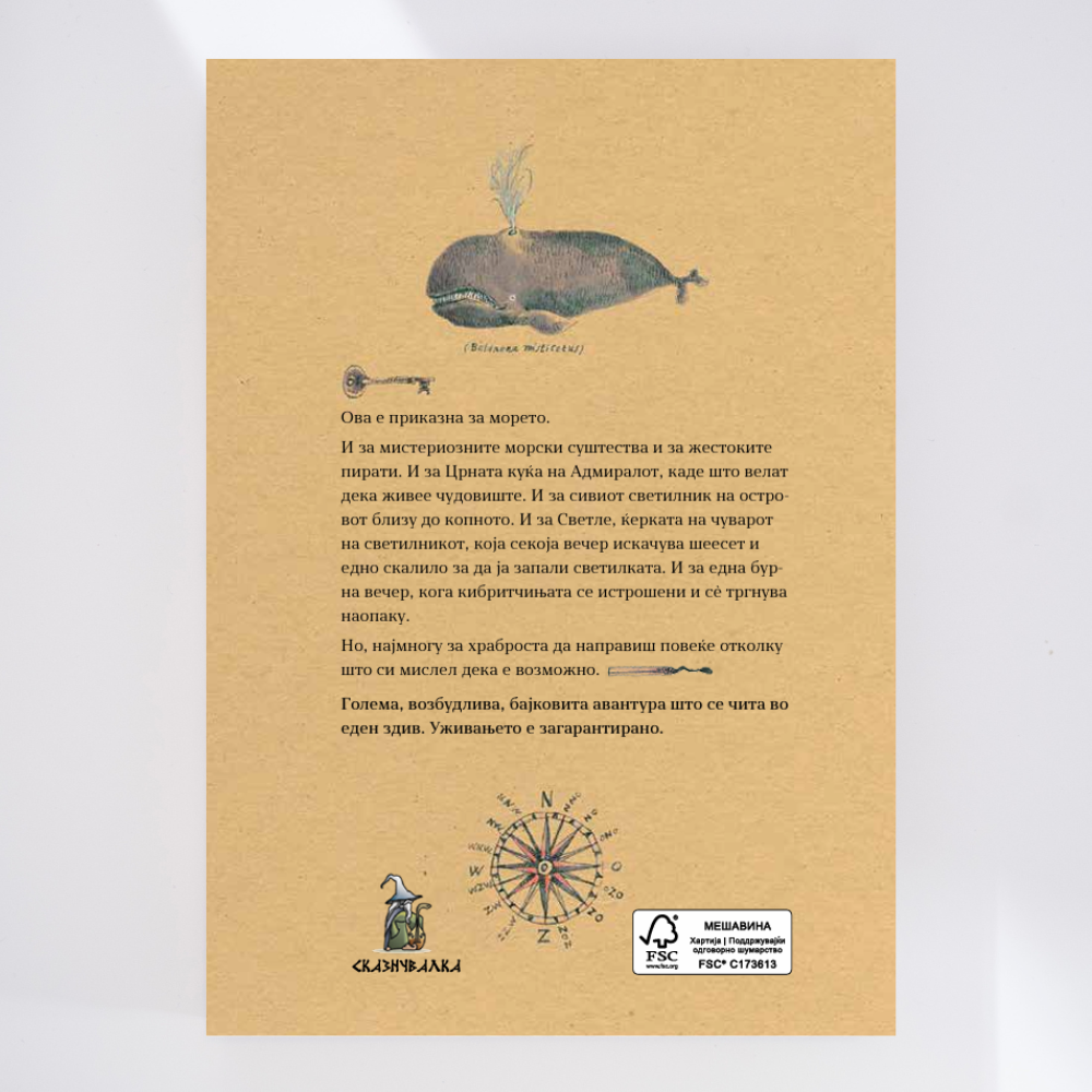 И за мистериозните морски суштества и за жестоките пирати. И за Црната куќа на Адмиралот, каде што велат дека живее чудовиште. И за сивиот светилник на островот близу до копното. И за Светле, ќерката на чуварот на светилникот, која секоја вечер искачува шеесет и едно скалило за да ја запали светилката. И за една бурна вечер, кога кибритчињата се истрошени и сè тргнува наопаку.