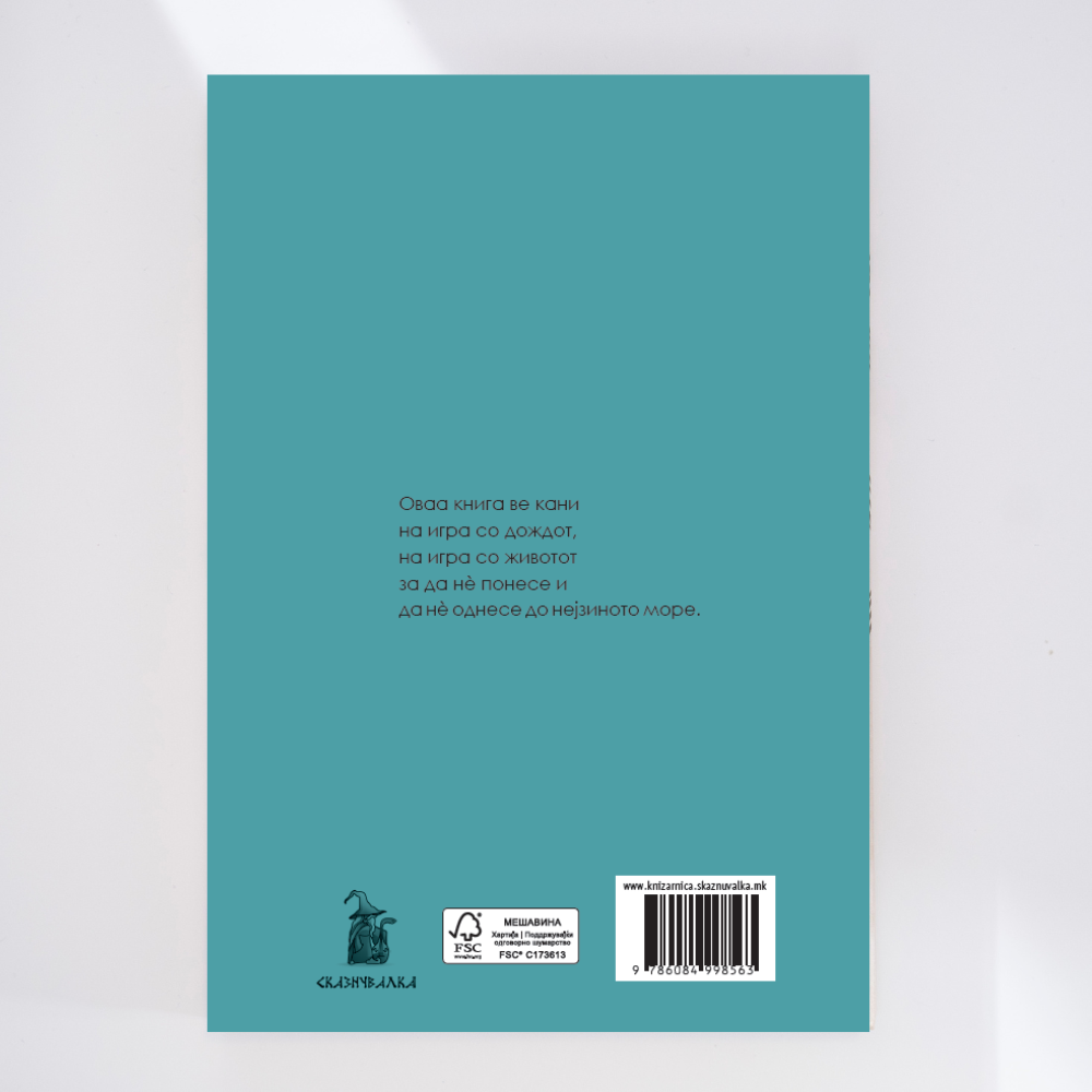 Оваа приказна пристигна на облак, еден ден додека истураше дожд и беснееше ветар, а капките дожд паѓаа на сите страни, те ваму те таму, на која како ќе ѝ текне, некои главечки, некои помешечки, некои право како стрели, други лизгајќи се како по тобоган, трети нишајќи се лево-десно. Невиден хаос. Облаците ги сееја капките на сите можни начини.